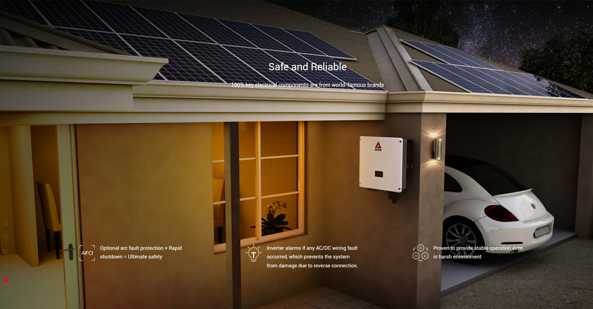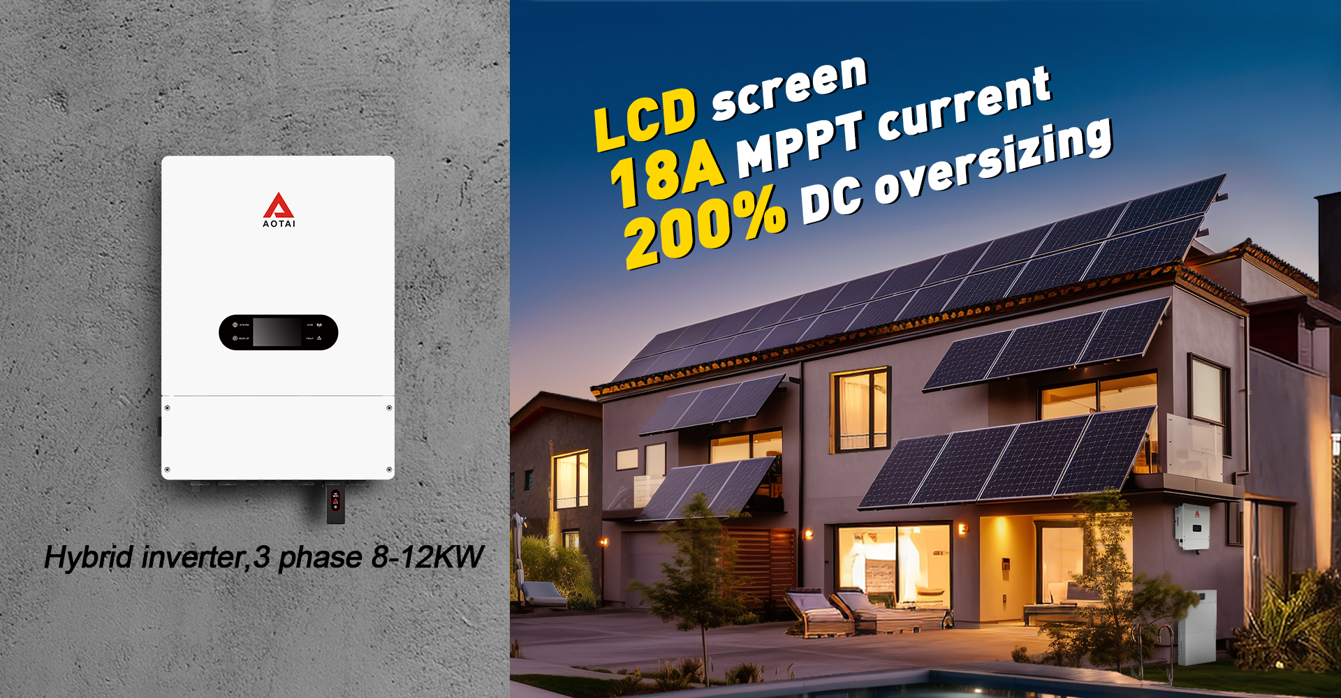 Aotai Electric est la solution parfaite pour votre système solaire domestique. Grâce à notre technologie optimisée DC, vous récupérez plus d'énergie de vos panneaux solaires et stockez plus d'énergie dans votre batterie pour alimenter les appareils électroménagers, les véhicules électriques et fournir une sauvegarde critique en cas de panne.